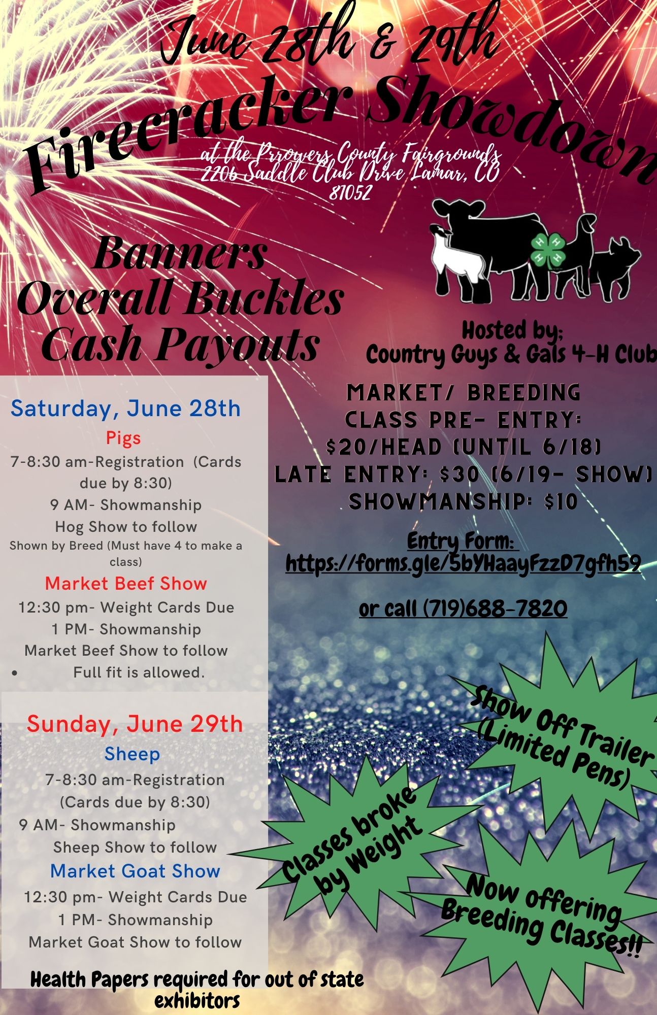 | 28-29 | Firecracker Showdown, Lamar CO. Flyer Entries | ||