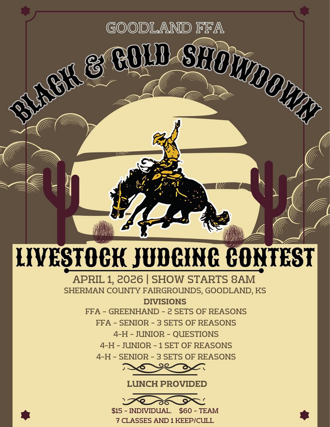 | 21 | Black & Gold Showdown Cattle Show - Goodland | ||
